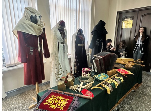 Праздник начался в холле учебного корпуса. Там развернули подворья национальных центров вуза. Гостям показали культуру кабардинского, балкарского и русского народов. Также были представлены выставки, подготовленные Интерклубом КБГУ при участии студентов из разных стран.